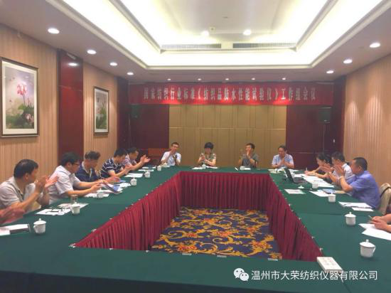 根據(jù)中華人民共和國(guó)工業(yè)和信息化部辦公廳“關(guān)于印發(fā)2018年第二批行業(yè)標(biāo)準(zhǔn)制修訂和外文版項(xiàng)目計(jì)劃的通知”(工信廳科【2018】31號(hào))的要求,由溫州市大榮紡織儀器有限公司承辦的紡織行業(yè)標(biāo)準(zhǔn)《紡織品防水性能試驗(yàn)儀》(計(jì)劃號(hào)2018-1230T-FZ)工作組會(huì)議,7月26日,在溫州將軍大酒店順利召開,與會(huì)的有關(guān)行業(yè)專家及協(xié)會(huì)領(lǐng)導(dǎo),一起對(duì)紡織行業(yè)標(biāo)準(zhǔn)《紡織品防水性能試驗(yàn)儀(靜水壓法)》工作組討論稿,展開深入細(xì)致的討論,并提出諸多建設(shè)性的指導(dǎo)意見,會(huì)議圓滿結(jié)束!