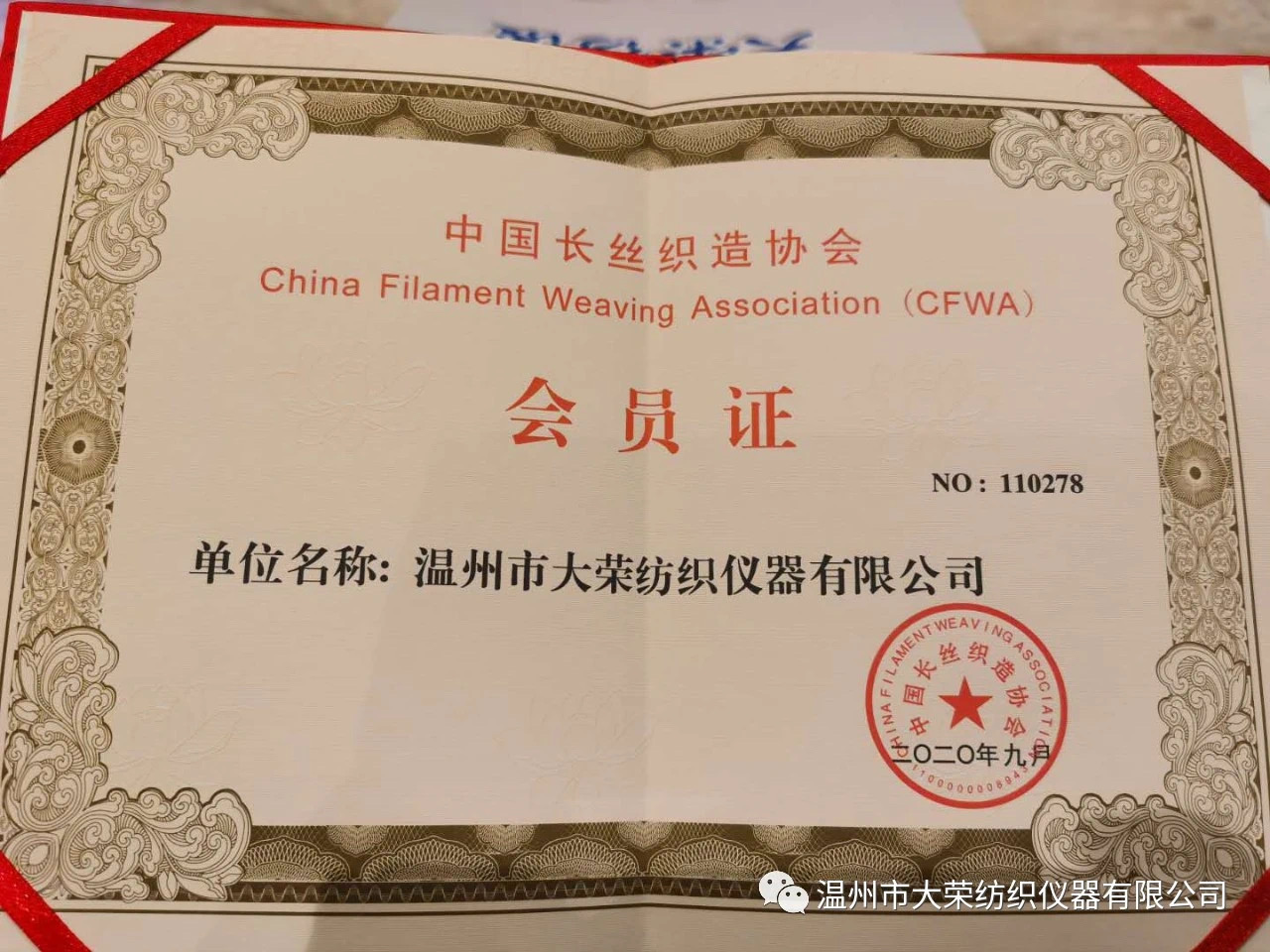 在審議理事會議案中溫州市大榮紡織儀器有限公司有幸提名擬納會員名單,并且順利通過審議,成為正式會員。這充分體現(xiàn)了大榮紡儀近些年的發(fā)展和實(shí)力,得到了社會各界的廣大認(rèn)可和肯定,也是大榮人不畏艱辛,共同努力的結(jié)果。