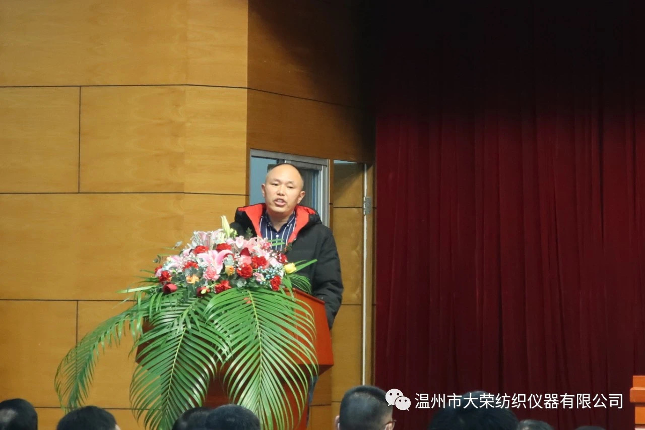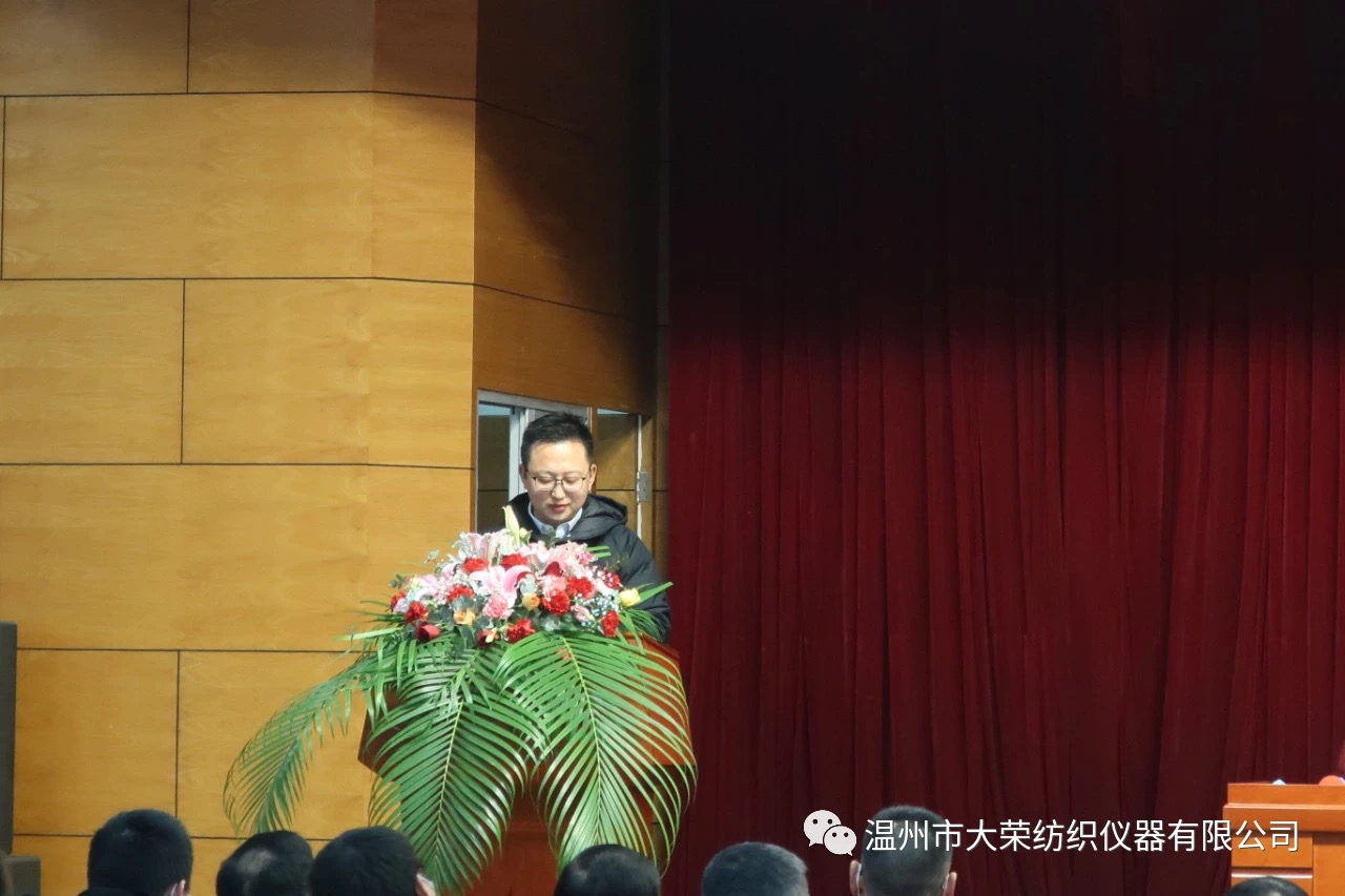 ????????喜迎春日、艷陽暖照。2021年1月26日上午九點(diǎn)整,溫州市大榮紡織儀器有限公司在大榮紡儀多媒體會議大廳里舉行了2020年工作總結(jié)暨表彰大會。董事長吳昭彪首先做了開講詞,并對2020年做了年度總結(jié),會上董事長吳昭彪指出大榮紡儀在今年的疫情中展現(xiàn)了大榮人的實(shí)力和努力,并新的一年市場前景很是看好,也祝愿大榮紡儀銷售目標(biāo)能再創(chuàng)佳績!2020年大榮紡儀銷售完成額歷年最高,且在疫情的大環(huán)境的影響下以如此優(yōu)異的成績贏得市場效益很是欣慰,表達(dá)了對公司各部門這一年付出的感謝。并對2021年公司的發(fā)展做了整體規(guī)劃,就2021年公司架構(gòu)的改革提出了議案以及新的目標(biāo)和發(fā)展方針。