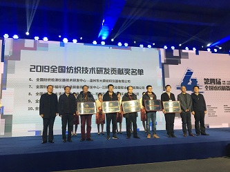 在頒獎(jiǎng)儀式環(huán)節(jié),中國紡織工程學(xué)會(huì)為10所中國紡織工程學(xué)會(huì)技術(shù)研發(fā)中心單位頒發(fā)了2019全國紡織技術(shù)研發(fā)貢獻(xiàn)獎(jiǎng),以表彰他們這一年的杰出工作。大榮紡儀作為全國紡織檢測儀器技術(shù)研發(fā)中心,榮獲“2019全國紡織技術(shù)研發(fā)貢獻(xiàn)獎(jiǎng)”。